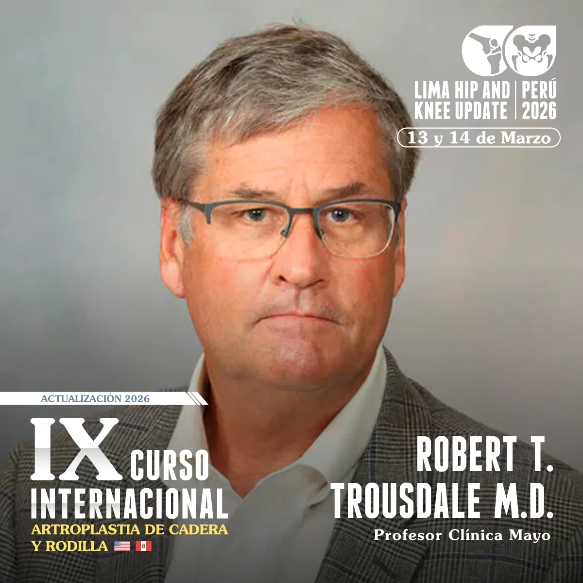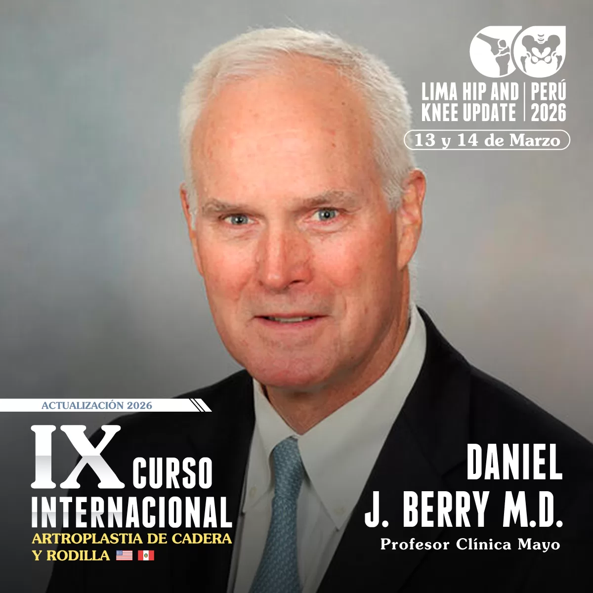 Reconocidos docentes de la Prestigiosa Clínica Mayo en Rochester, Minnesota darán Catedra en el noveno curso Internacional de Artroplastia de cadera y Rodilla en Perú.